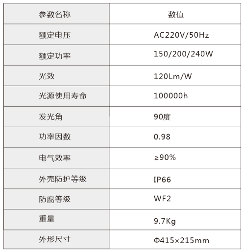 ■ 燈體的防護等級為IP66,防腐等級可達到WF2,燈體表面永不腐蝕,永不生銹。