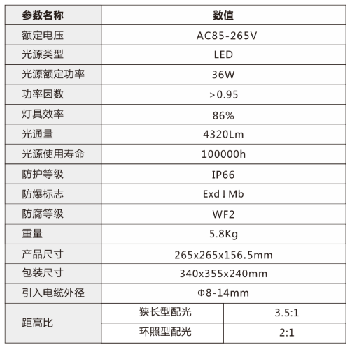 • 優良的防爆性能,可在各種易燃易爆場所安全使用,減少在燈泡或燈具維護和維修期間事故的發生率;